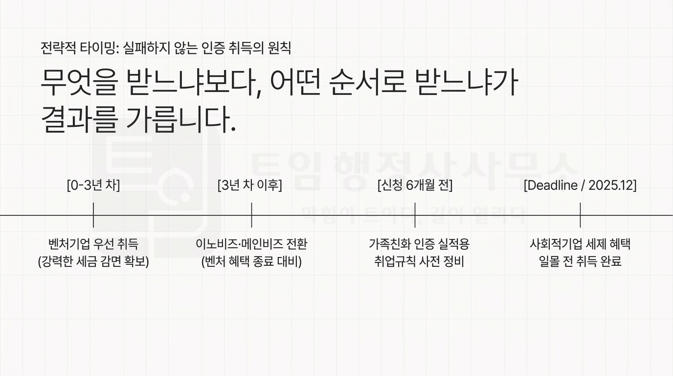 · 벤처기업 확인은 창업 3년 안에, 그 이후엔 이노비즈·메인비즈로 방향을 트는 것이 정석입니다.